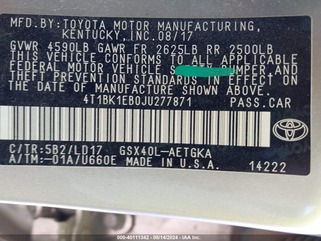 This 2018 Toyota Avalon (Gold) comes from a major insurance auction in the USA or Canada. All information on this page is linked to the vehicle’s VIN (4T1BK1EB0JU277871), which helps confirm where the car was listed and what condition it was in at the time of sale.