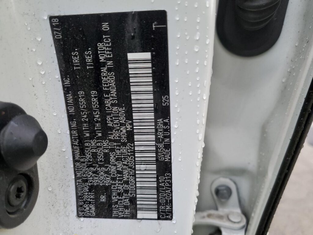 | VIN Number | 5TDDGRFH7JS051122 |