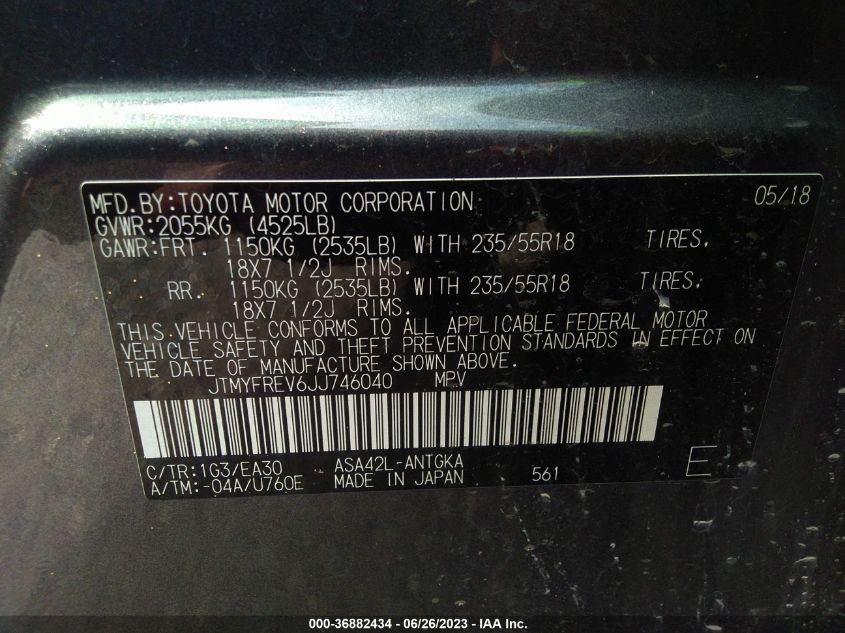 | VIN Number | JTMYFREV6JJ746040 |