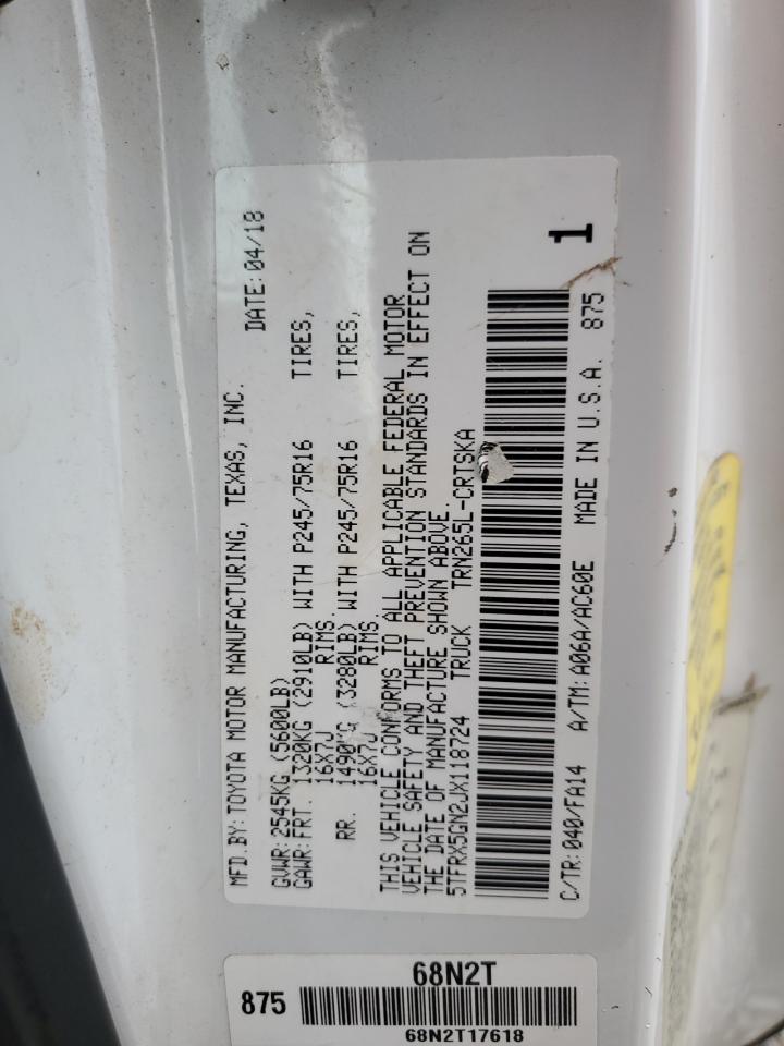 VIN: 5TFRX5GN2JX118724