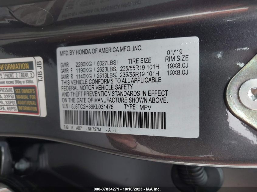 | VIN Number | 5J8TC2H36KL031478 |