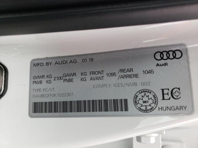 This 2019 Audi A3 (White) comes from a major insurance auction in the USA or Canada. All information on this page is linked to the vehicle’s VIN (WAUBEGFF0K1022301), which helps confirm where the car was listed and what condition it was in at the time of sale.