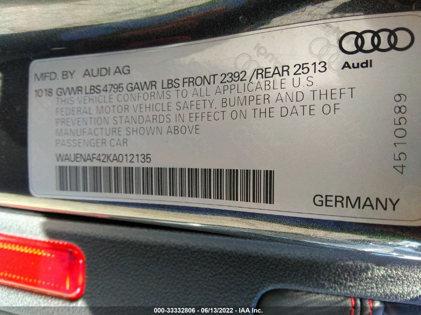 | VIN Number | WAUENAF42KA012135 |