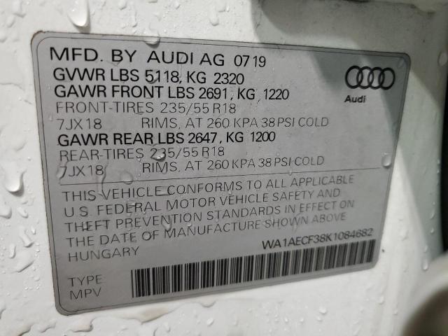 This 2019 AUDI Q3 (WHITE) comes from a major insurance auction in the USA or Canada. All information on this page is linked to the vehicle’s VIN (WA1AECF38K1084682), which helps confirm where the car was listed and what condition it was in at the time of sale.