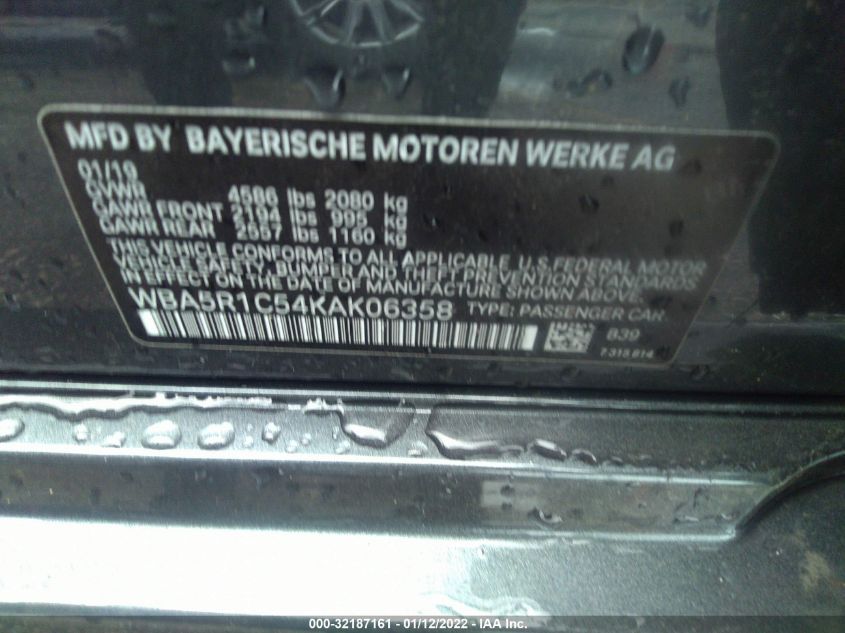 | VIN Number | WBA5R1C54KAK06358 |