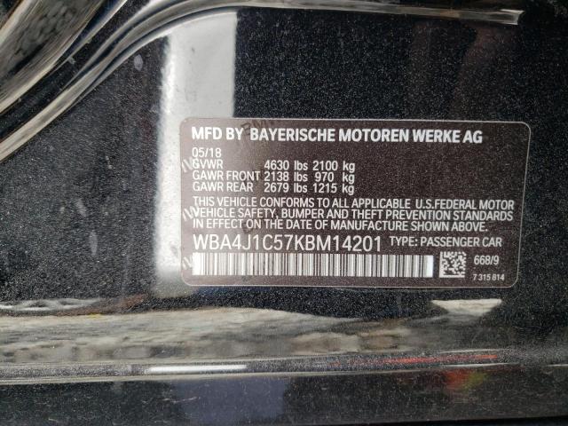 This 2019 BMW 4 Series (Black) comes from a major insurance auction in the USA or Canada. All information on this page is linked to the vehicle’s VIN (WBA4J1C57KBM14201), which helps confirm where the car was listed and what condition it was in at the time of sale.
