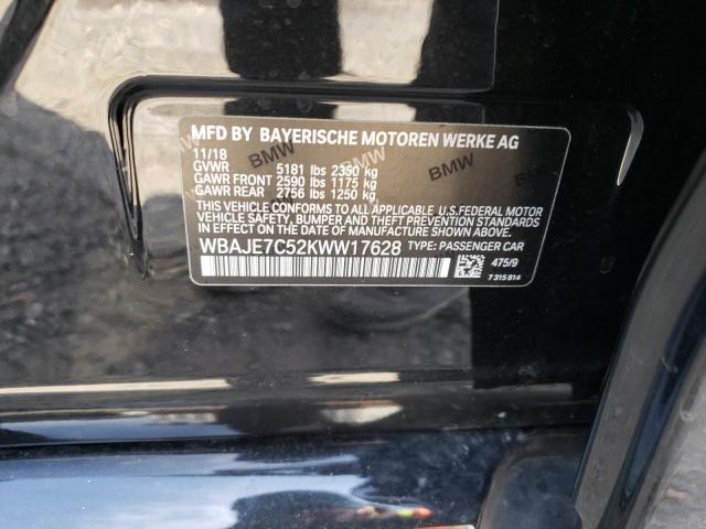 This 2019 BMW 5 Series (Black) comes from a major insurance auction in the USA or Canada. All information on this page is linked to the vehicle’s VIN (WBAJE7C52KWW17628), which helps confirm where the car was listed and what condition it was in at the time of sale.