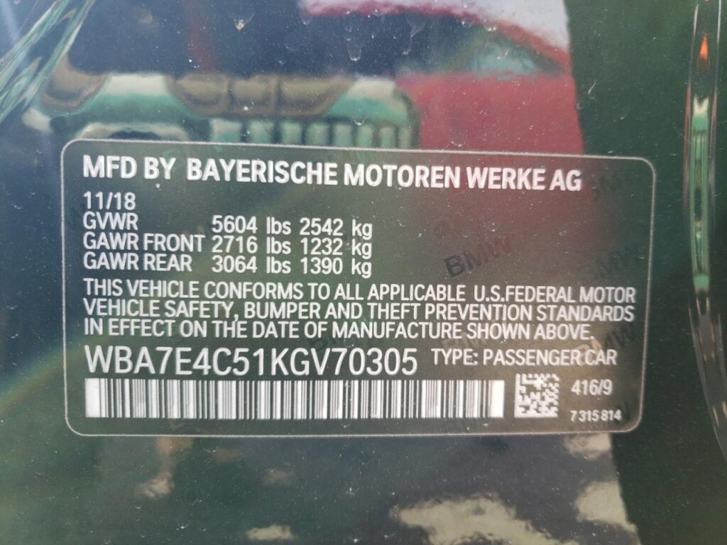VIN NumberWBA7E4C51KGV70305