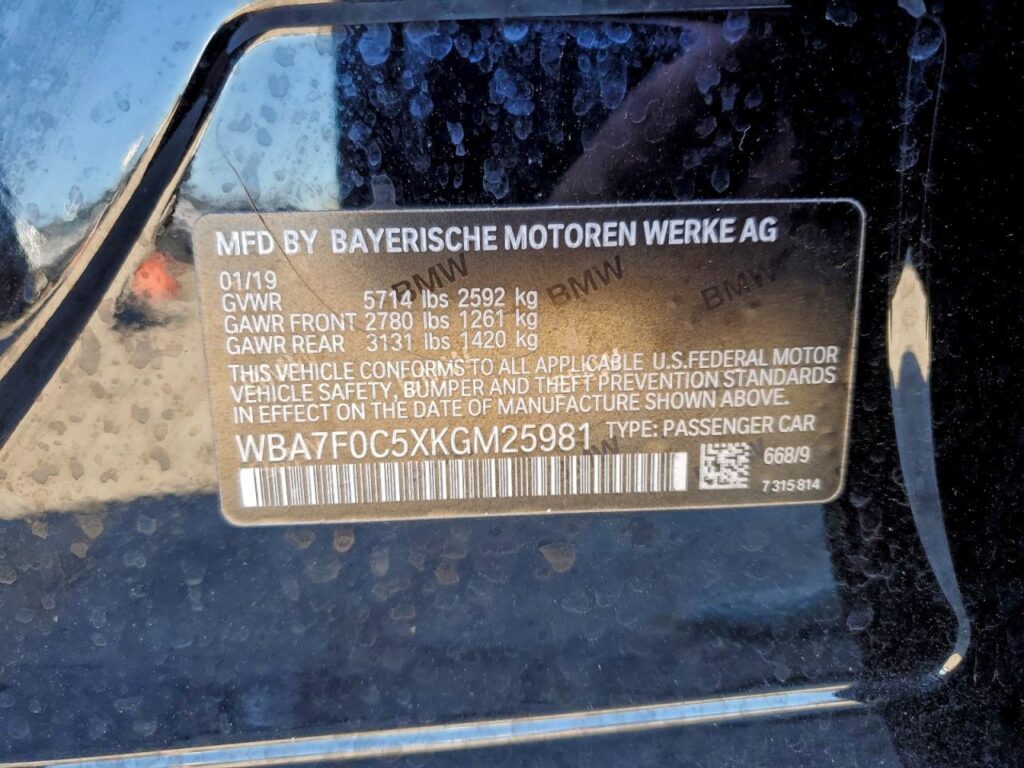 | VIN Number | WBA7F0C5XKGM25981 |