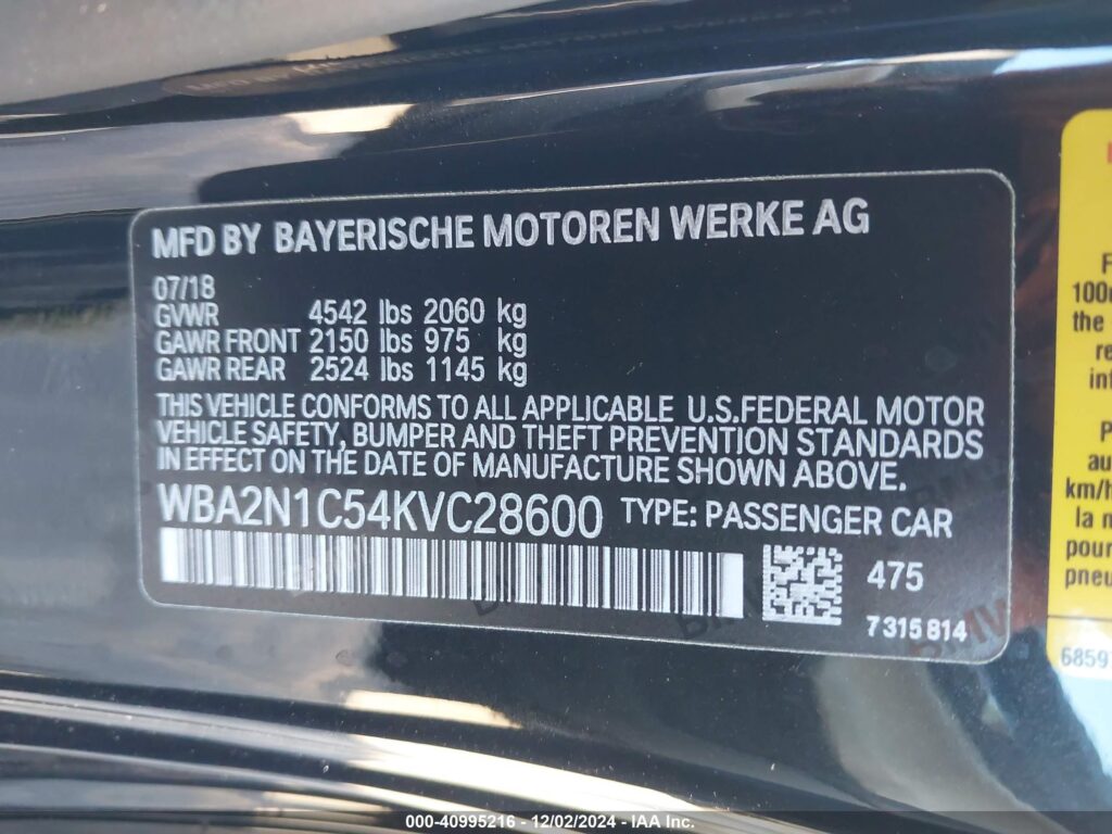 | VIN Number | WBA2N1C54KVC28600 |