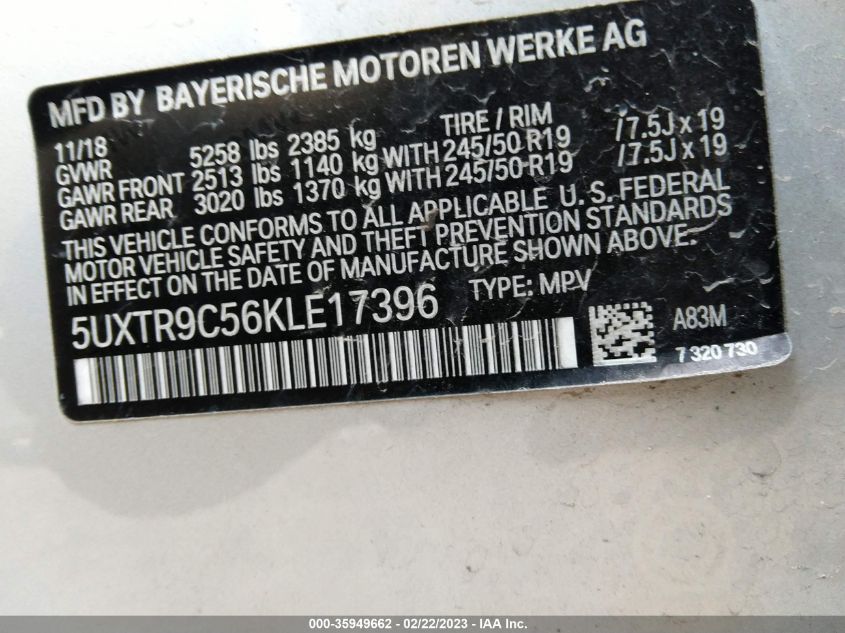 2019 BMW X3 – 5UXTR9C56KLE17396