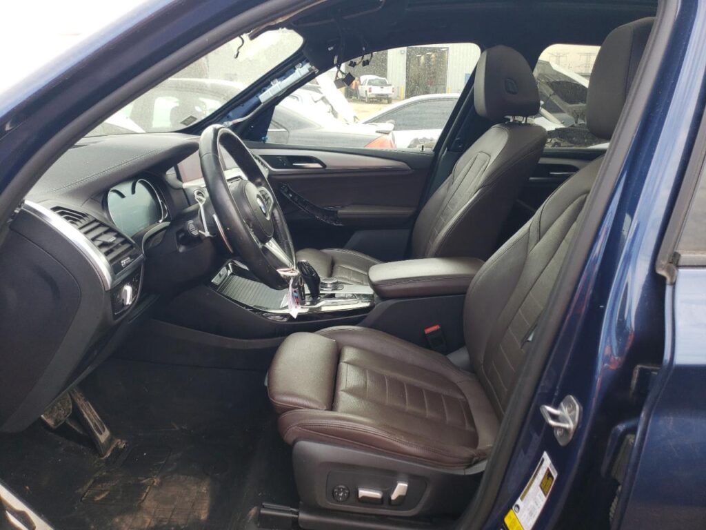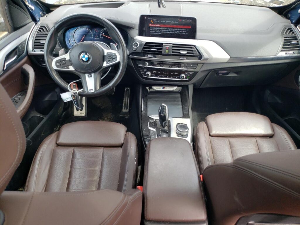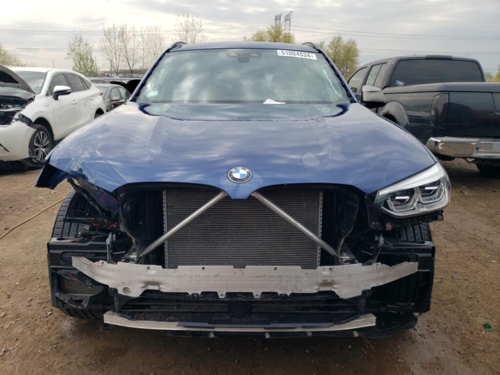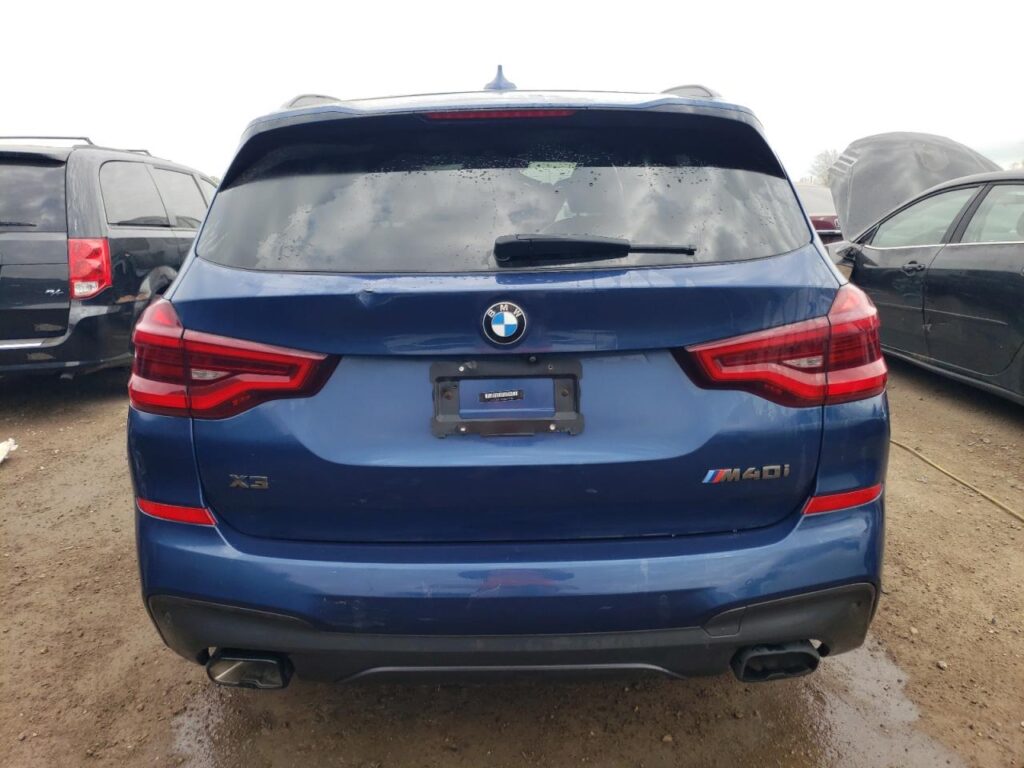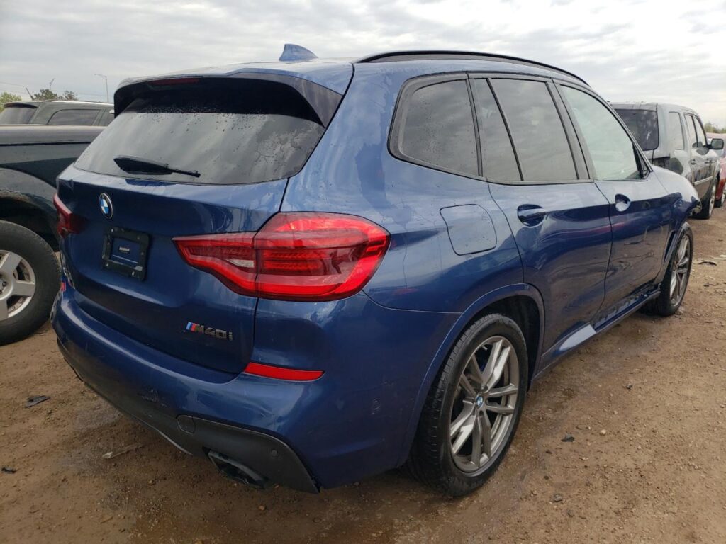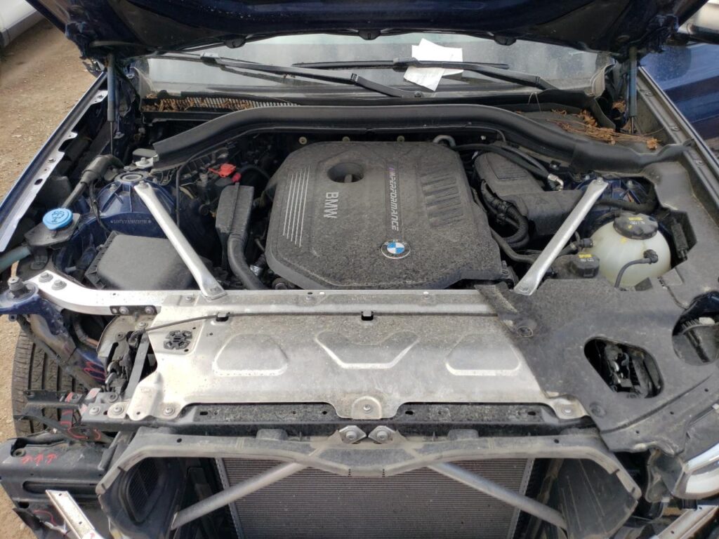 This 2019 BMW X3 (Blue) is equipped with an engine designed to balance performance and efficiency. According to the auction listing, the vehicle had 128,666 miles at the time of sale.