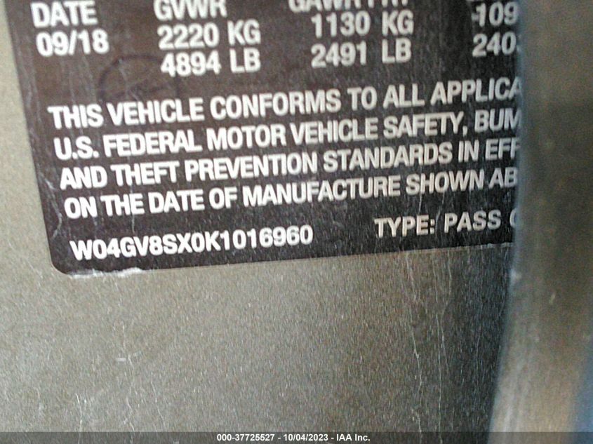 | VIN Number | W04GV8SX0K1016960 |