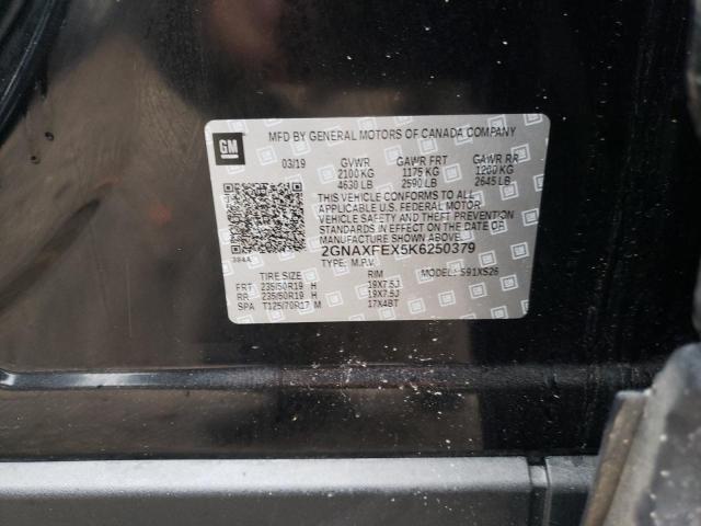 This 2019 Chevrolet Equinox (Black) comes from a major insurance auction in the USA or Canada. All information on this page is linked to the vehicle’s VIN (2GNAXPEX5K6250379), which helps confirm where the car was listed and what condition it was in at the time of sale.