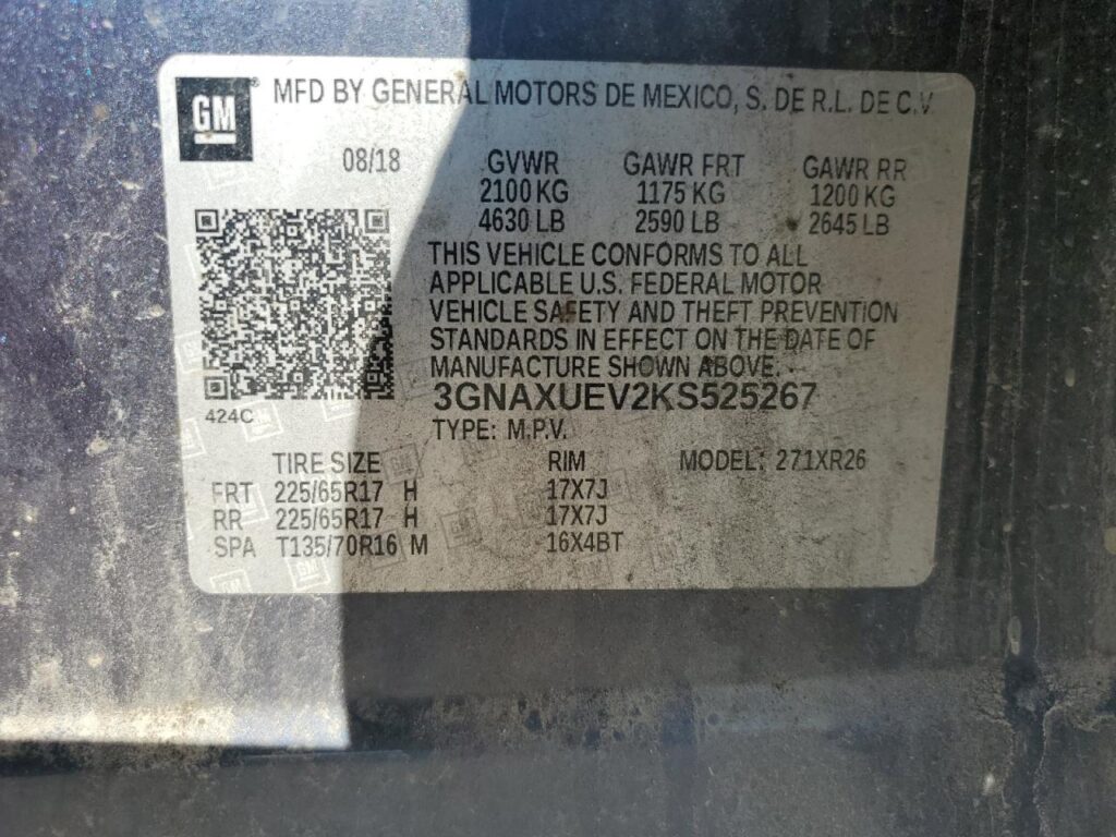 | VIN Number | 3GNAXUEV2KS525267 |