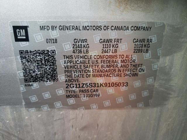 This 2019 Chevrolet Impala (Silver) comes from a major insurance auction in the USA or Canada. All information on this page is linked to the vehicle’s VIN (2G11Z5S31K9105033), which helps confirm where the car was listed and what condition it was in at the time of sale.