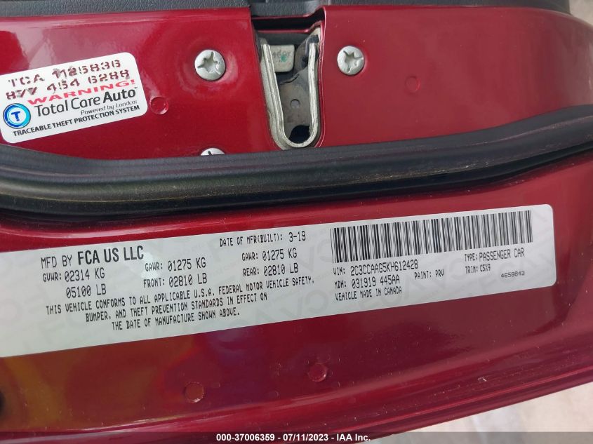 | VIN Number | 2C3CCAAG5KH612428 |