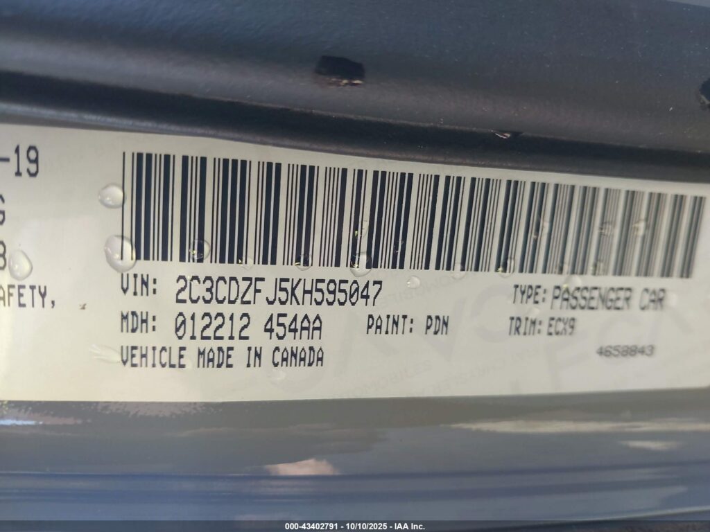 VIN Number2C3CDZFJ5KH595047