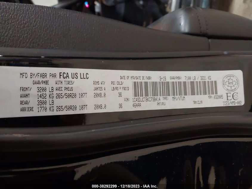 2019 DODGE DURANGO – 1C4SDJCT8KC738414
