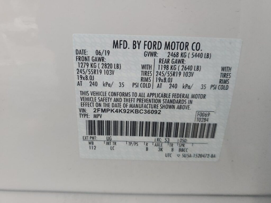 This 2019 Ford Edge (White) comes from a major insurance auction in the USA or Canada. All information on this page is linked to the vehicle’s VIN (2FMPK4K92KBC36092), which helps confirm where the car was listed and what condition it was in at the time of sale.