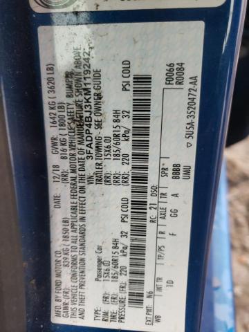 This 2019 Ford Fiesta (Blue) comes from a major insurance auction in the USA or Canada. All information on this page is linked to the vehicle’s VIN (3FADP4BJ3KM119242), which helps confirm where the car was listed and what condition it was in at the time of sale.