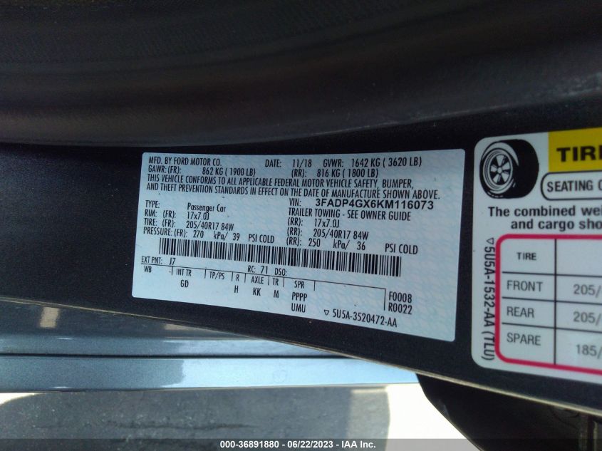 VIN: 3FADP4GX6KM116073