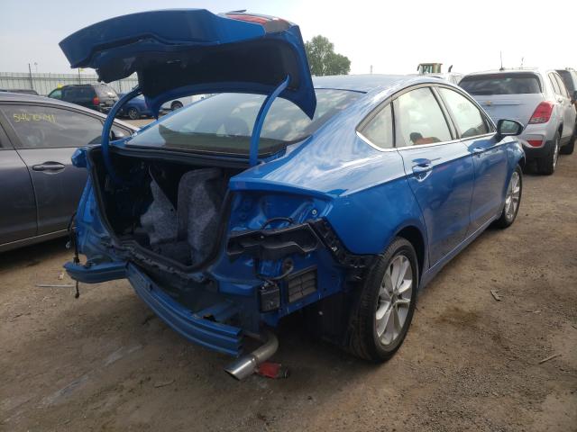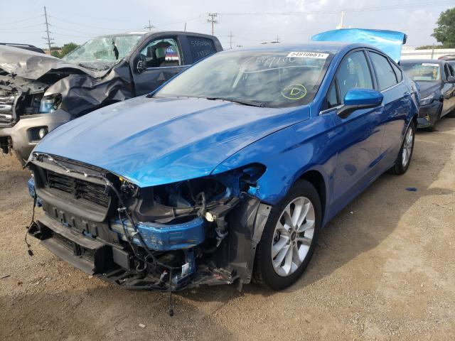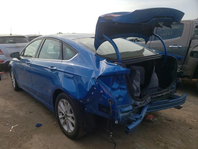 This 2019 Ford Fusion (Blue) is equipped with an engine designed to balance performance and efficiency. According to the auction listing, the vehicle had 16,541 miles at the time of sale.