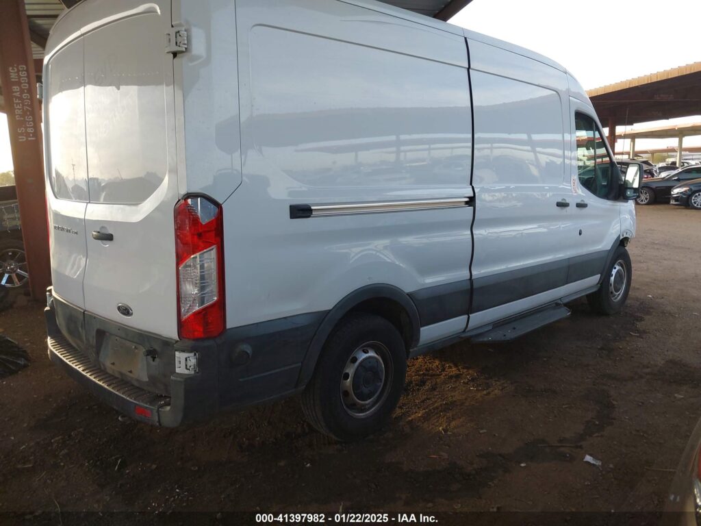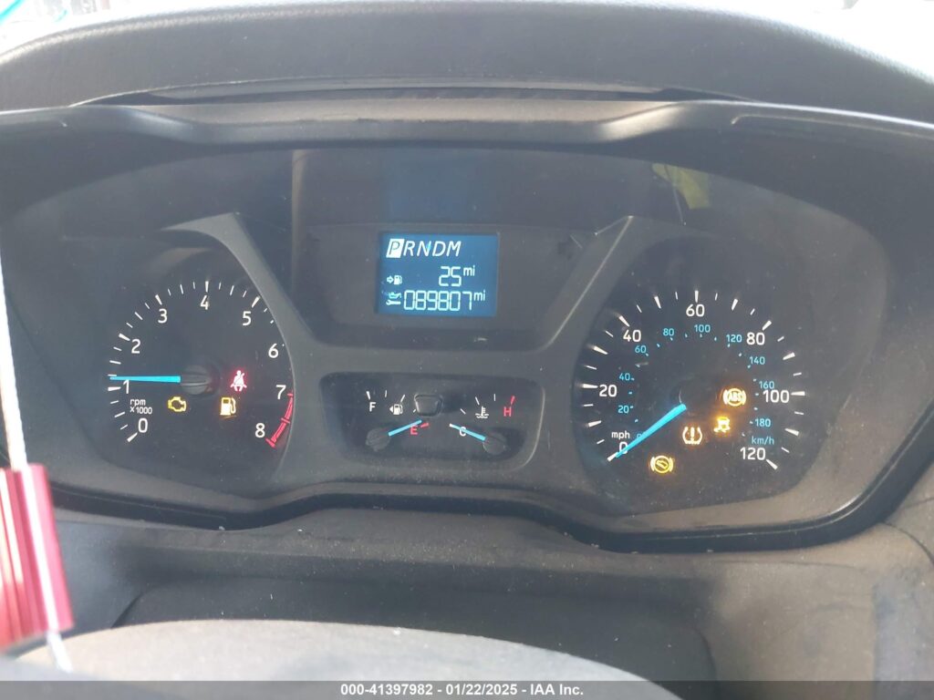 This 2019 Ford Transit 150 (White) is equipped with an engine designed to balance performance and efficiency. According to the auction listing, the vehicle had 89,807 miles at the time of sale.