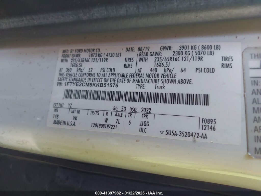 VIN Number1FTYE2CM8KKB51576