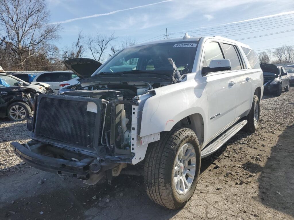 This 2019 GMC Yukon (White) is equipped with an engine designed to balance performance and efficiency. According to the auction listing, the vehicle had 140,083 miles at the time of sale.