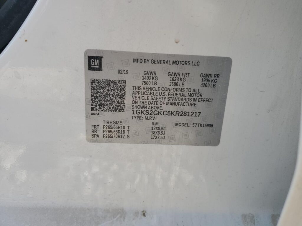 VIN: 1GKS2GKC5KR281217