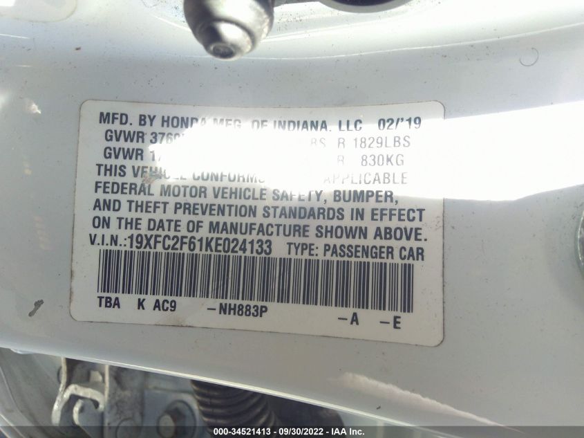| VIN Number | 19XFC2F61KE024133 |