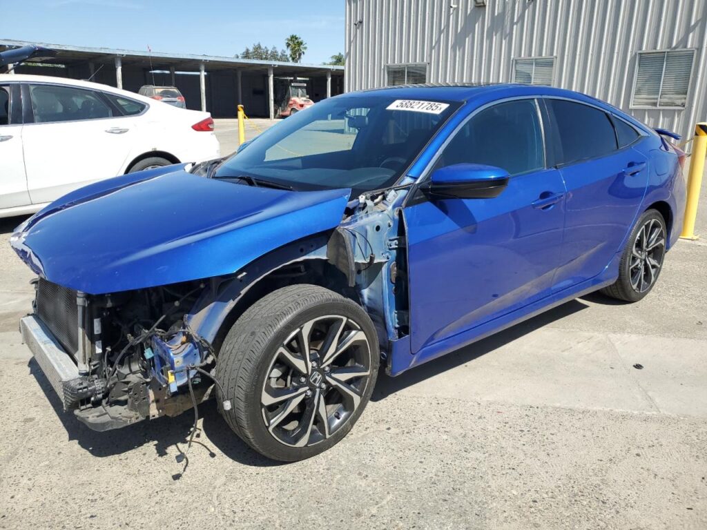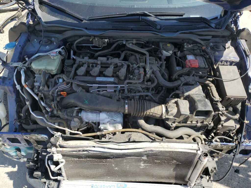 This 2019 Honda Civic (Blue) is equipped with an engine designed to balance performance and efficiency. According to the auction listing, the vehicle had 60,762 miles at the time of sale.