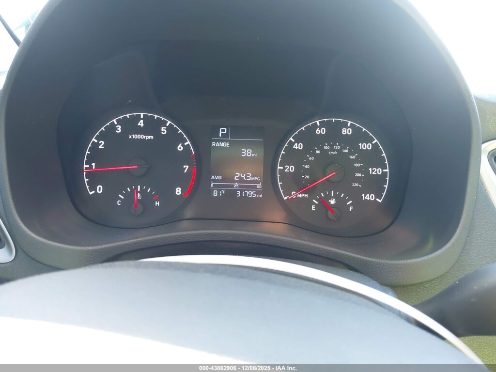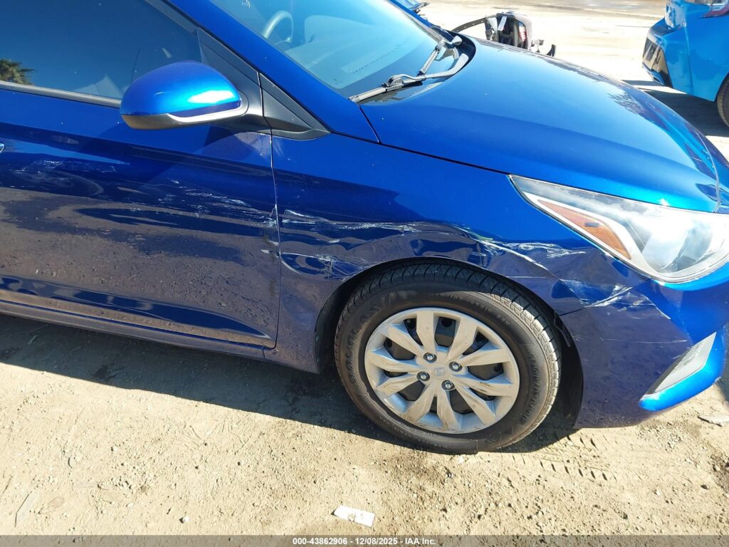 This 2019 Hyundai Accent (Blue) is equipped with an engine designed to balance performance and efficiency. According to the auction listing, the vehicle had 31,795 miles at the time of sale.