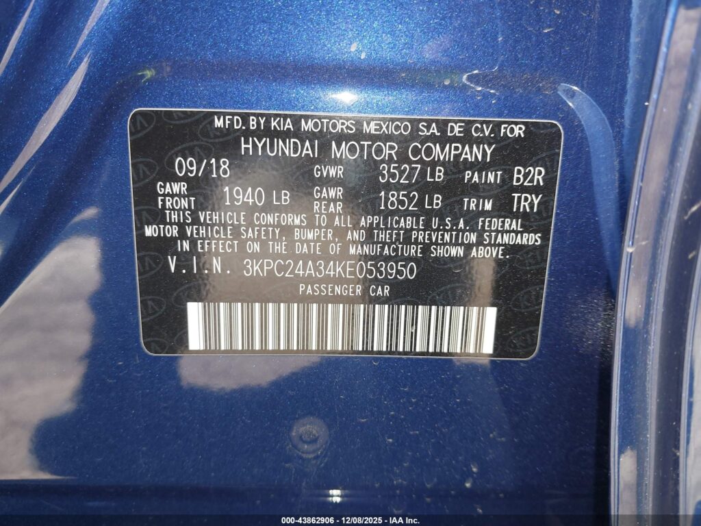 This 2019 Hyundai Accent (Blue) comes from a major insurance auction in the USA or Canada. All information on this page is linked to the vehicle’s VIN (3KPC24A34KE053950), which helps confirm where the car was listed and what condition it was in at the time of sale.