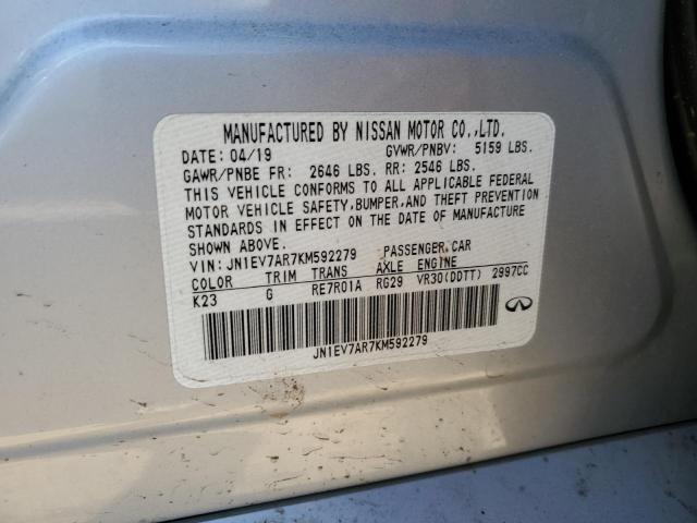 This 2019 INFINITI Q50 (SILVER) comes from a major insurance auction in the USA or Canada. All information on this page is linked to the vehicle’s VIN (JN1EV7AR7KM592279), which helps confirm where the car was listed and what condition it was in at the time of sale.