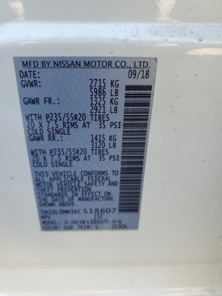 This 2019 INFINITI QX60 (WHITE) comes from a major insurance auction in the USA or Canada. All information on this page is linked to the vehicle’s VIN (5N1DL0MM3KC518607), which helps confirm where the car was listed and what condition it was in at the time of sale.