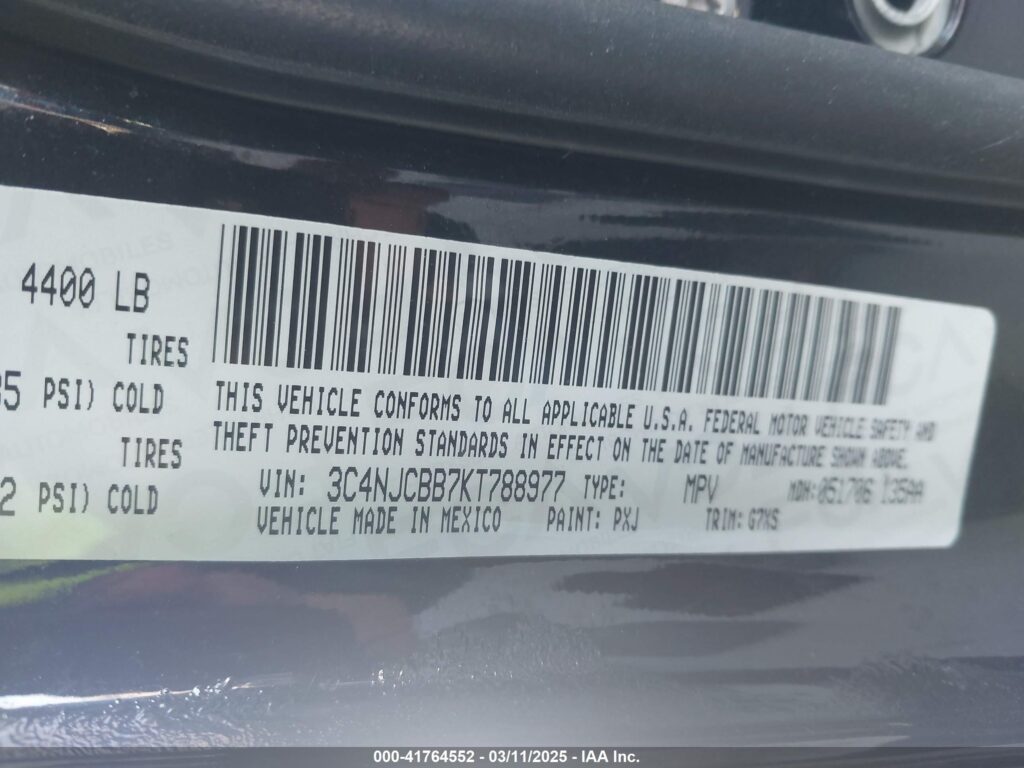 VIN: 3C4NJCBB7KT788977