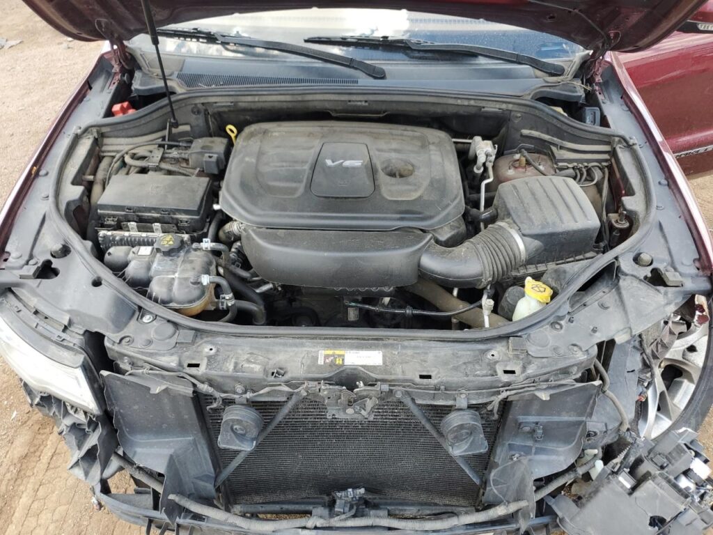 This 2019 Jeep Grand Cherokee (Red) is equipped with an engine designed to balance performance and efficiency. According to the auction listing, the vehicle had 195,485 miles at the time of sale.