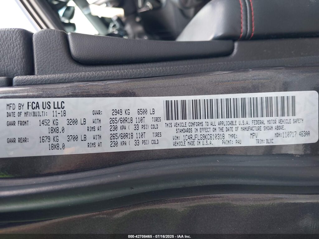 | VIN Number | 1C4RJFLG9KC610318 |