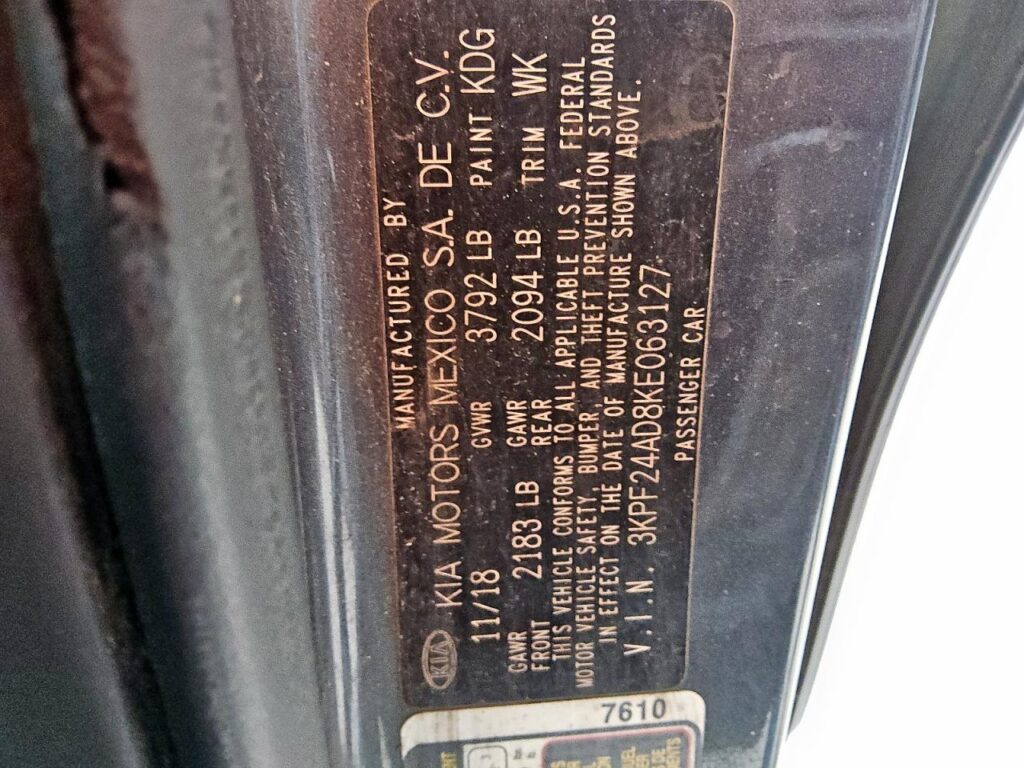 This 2019 Kia Forte (Grey) comes from a major insurance auction in the USA or Canada. All information on this page is linked to the vehicle’s VIN (3KPF24AD8KE063127), which helps confirm where the car was listed and what condition it was in at the time of sale.