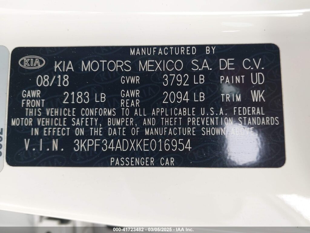 This 2019 Kia Forte (White) comes from a major insurance auction in the USA or Canada. All information on this page is linked to the vehicle’s VIN (3KPF34ADXKE016954), which helps confirm where the car was listed and what condition it was in at the time of sale.