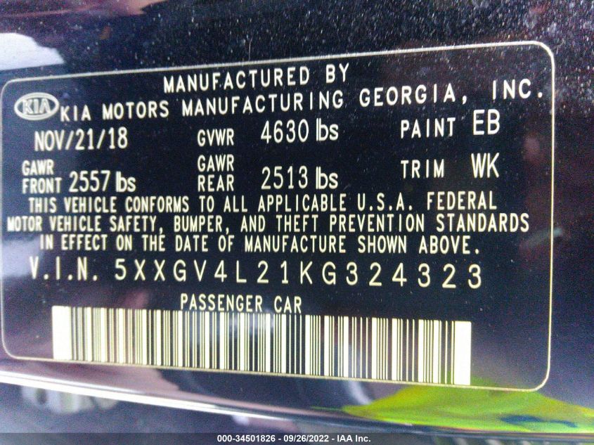 | VIN Number | 5XXGV4L21KG324323 |