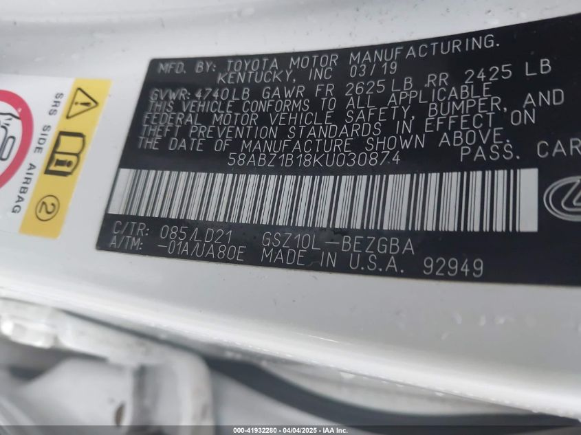 2019 LEXUS ES – 58ABZ1B18KU030874