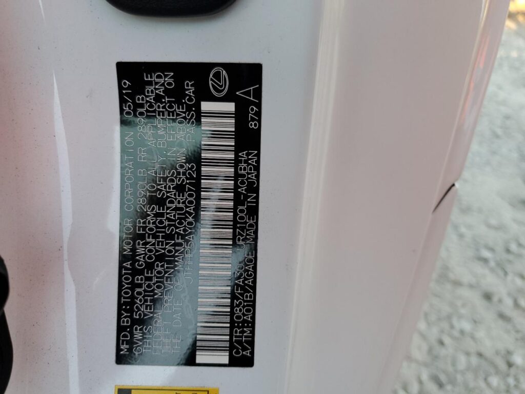 | VIN Number | JTHHP5AY0KA007123 |