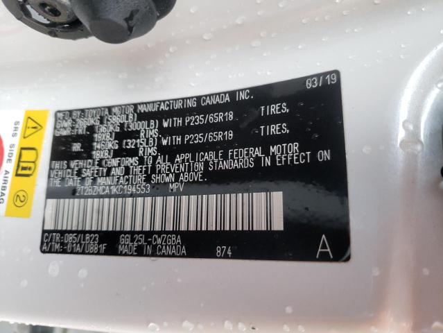 This 2019 Lexus RX 350 (White) comes from a major insurance auction in the USA or Canada. All information on this page is linked to the vehicle’s VIN (2T2BZMCA1KC194553), which helps confirm where the car was listed and what condition it was in at the time of sale.