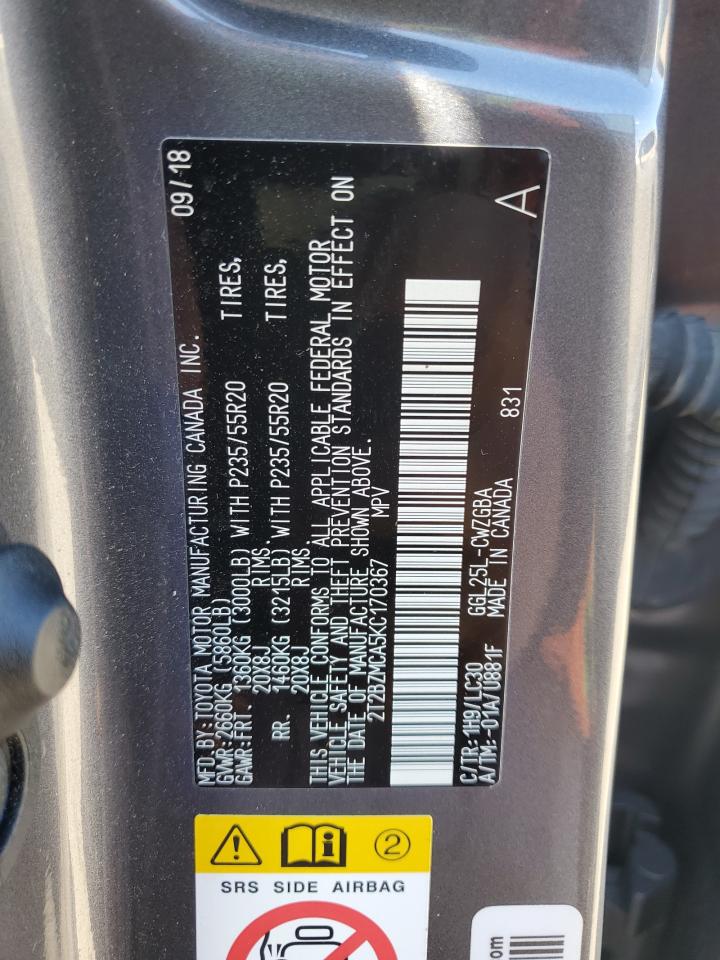 This 2019 Lexus RX 350 (Grey) comes from a major insurance auction in the USA or Canada. All information on this page is linked to the vehicle’s VIN (2T2BZMCA5KC170367), which helps confirm where the car was listed and what condition it was in at the time of sale.