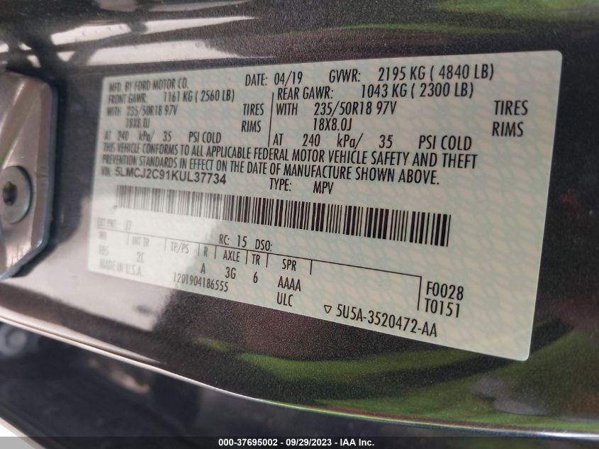 2019 LINCOLN MKC – 5LMCJ2C91KUL37734