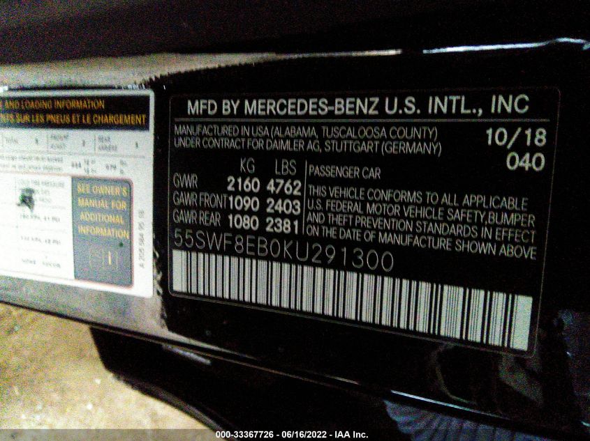 2019 Mercedes-Benz C-Class – 55SWF8EB0KU291300