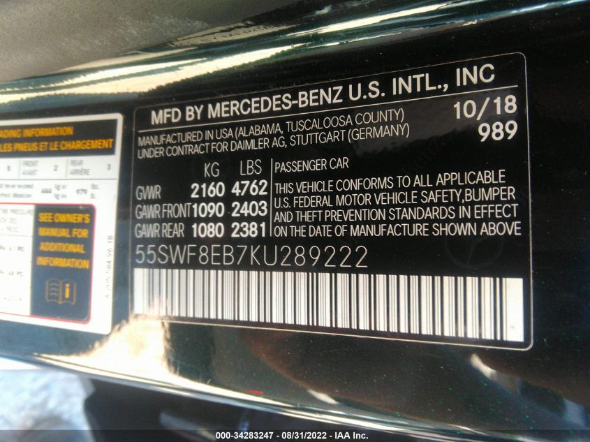 2019 Mercedes-Benz C-Class – 55SWF8EB7KU289222